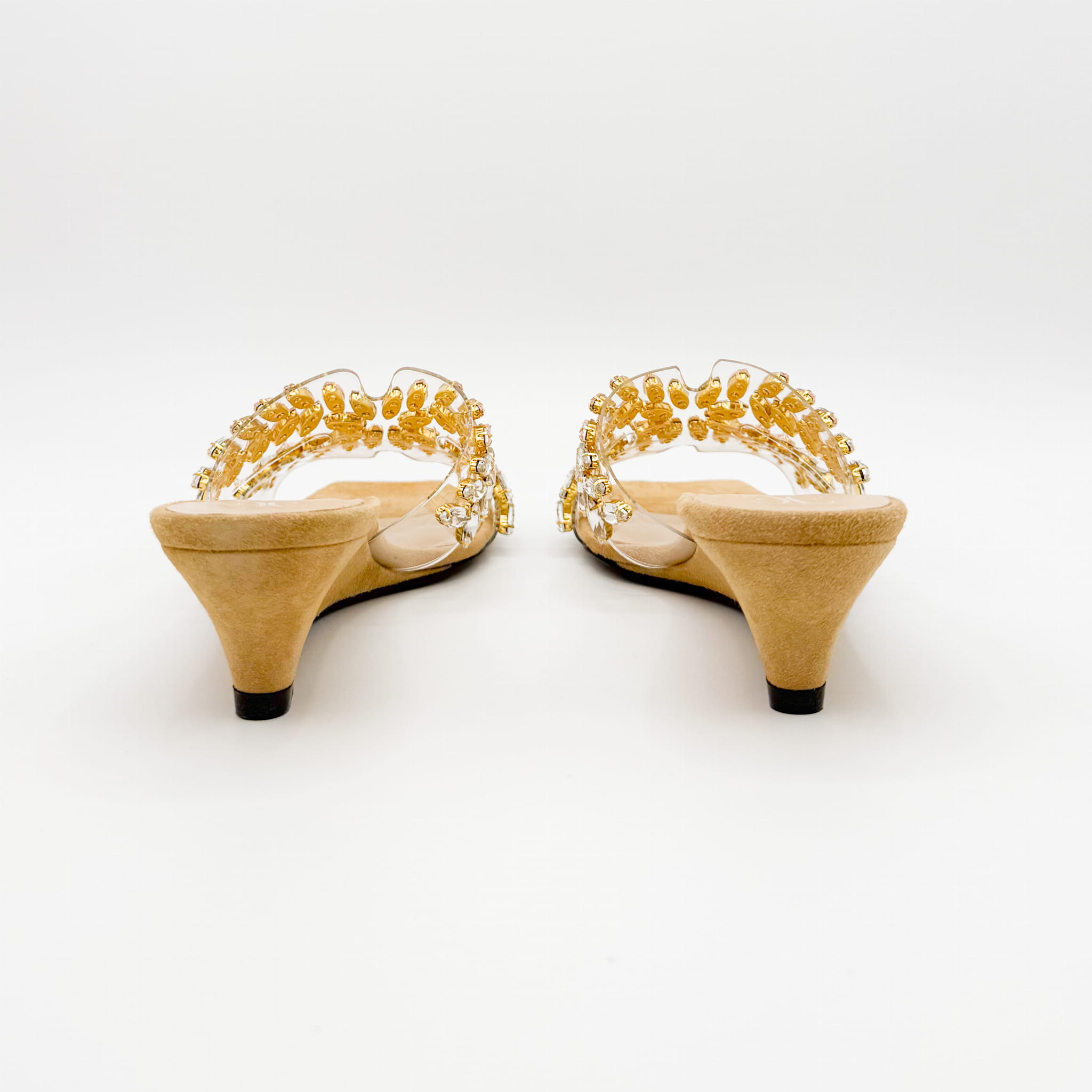 Ozdobione przezroczystymi paskami z kryształkami w kolorze żółtym, różowym i srebrnym.