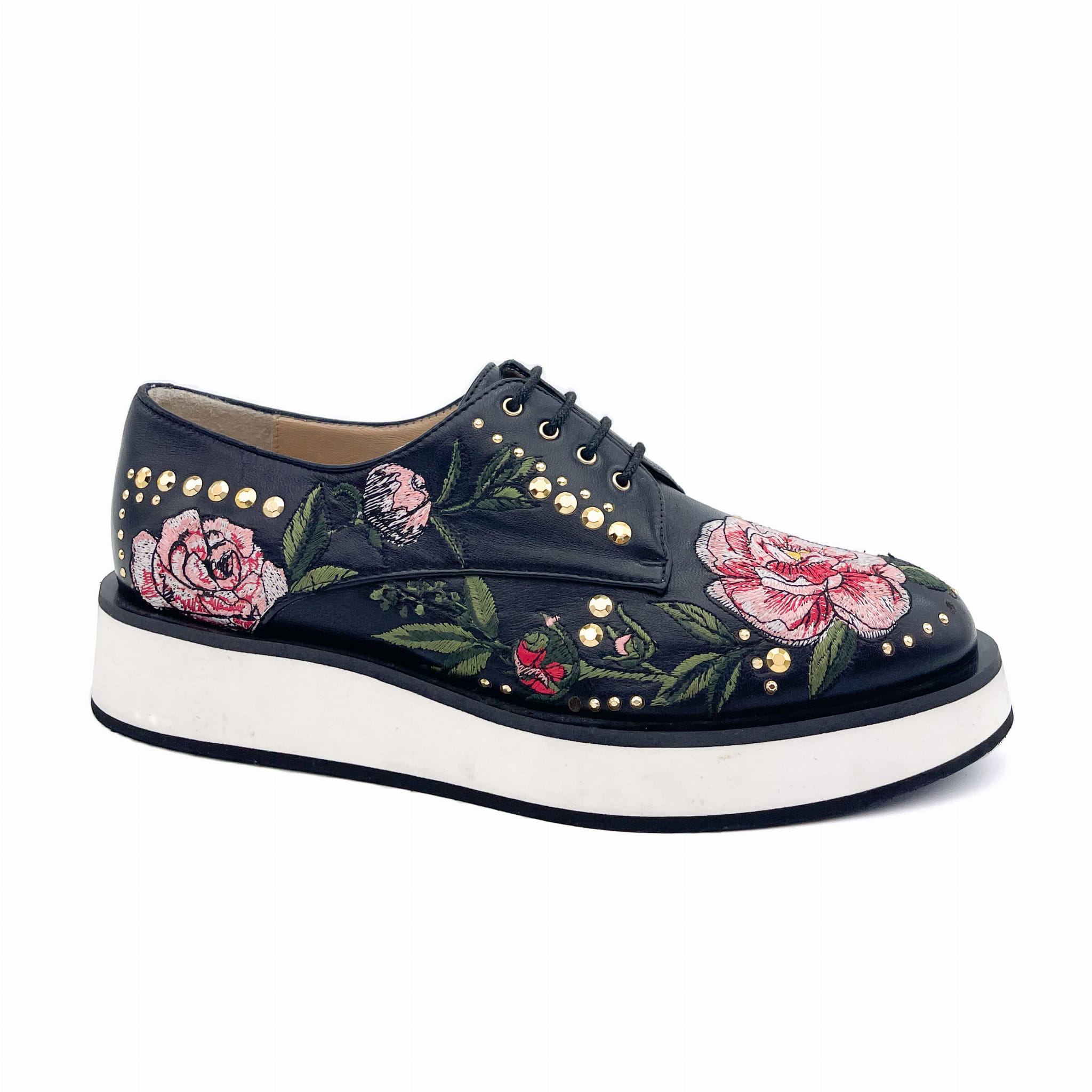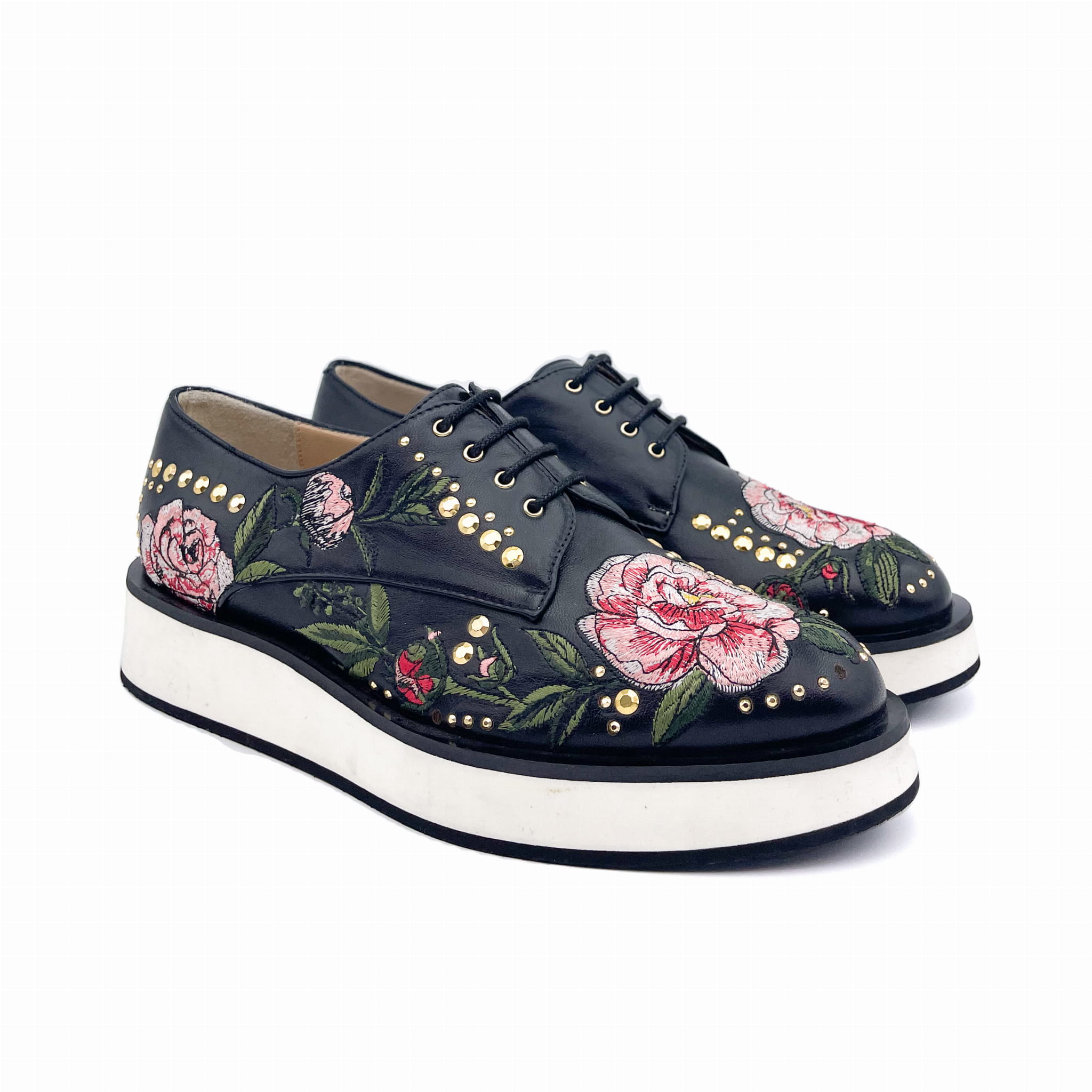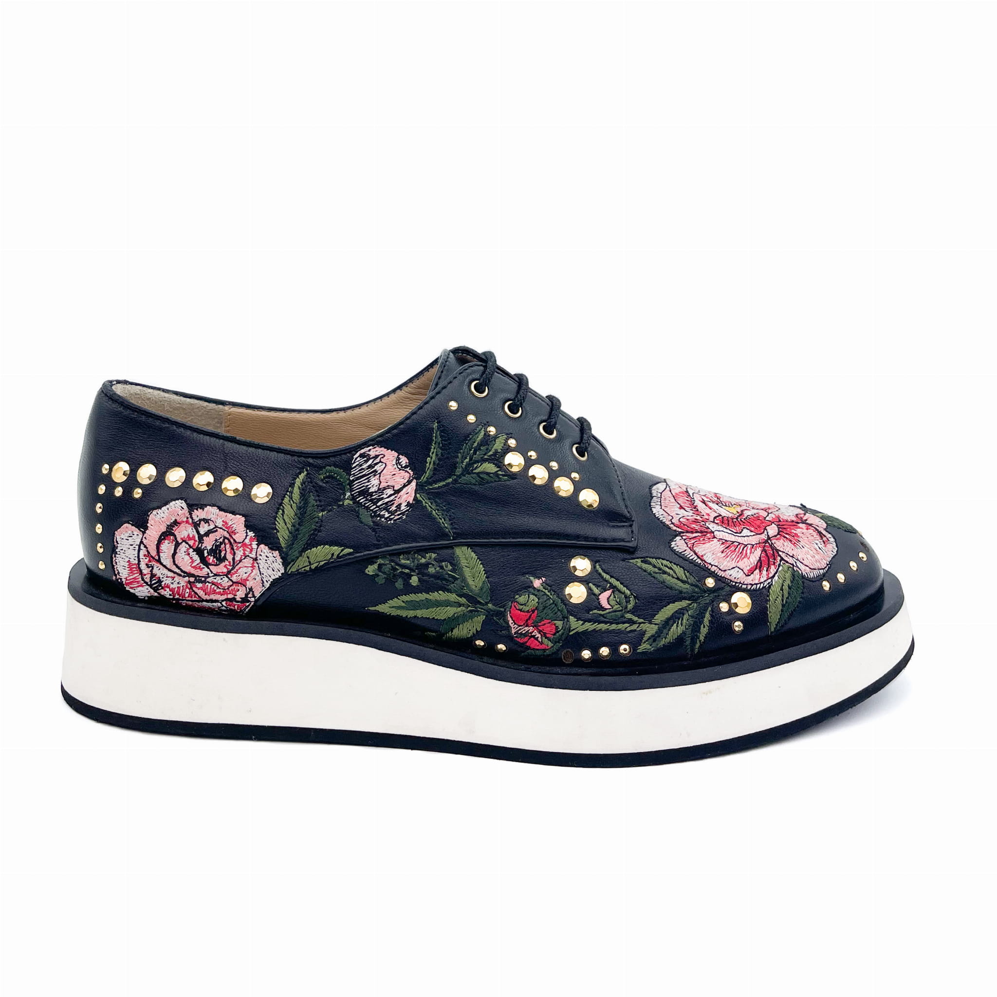 Wykonane z wysokiej jakości skóry licowej z ozdobnym kolorowym haftem.