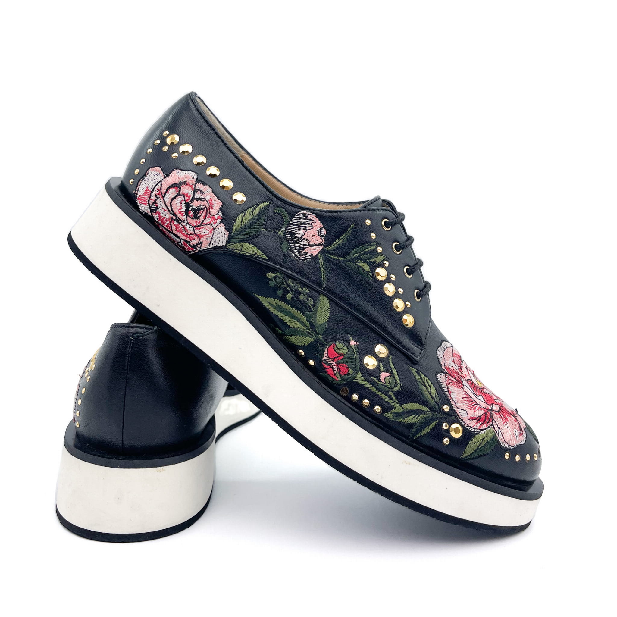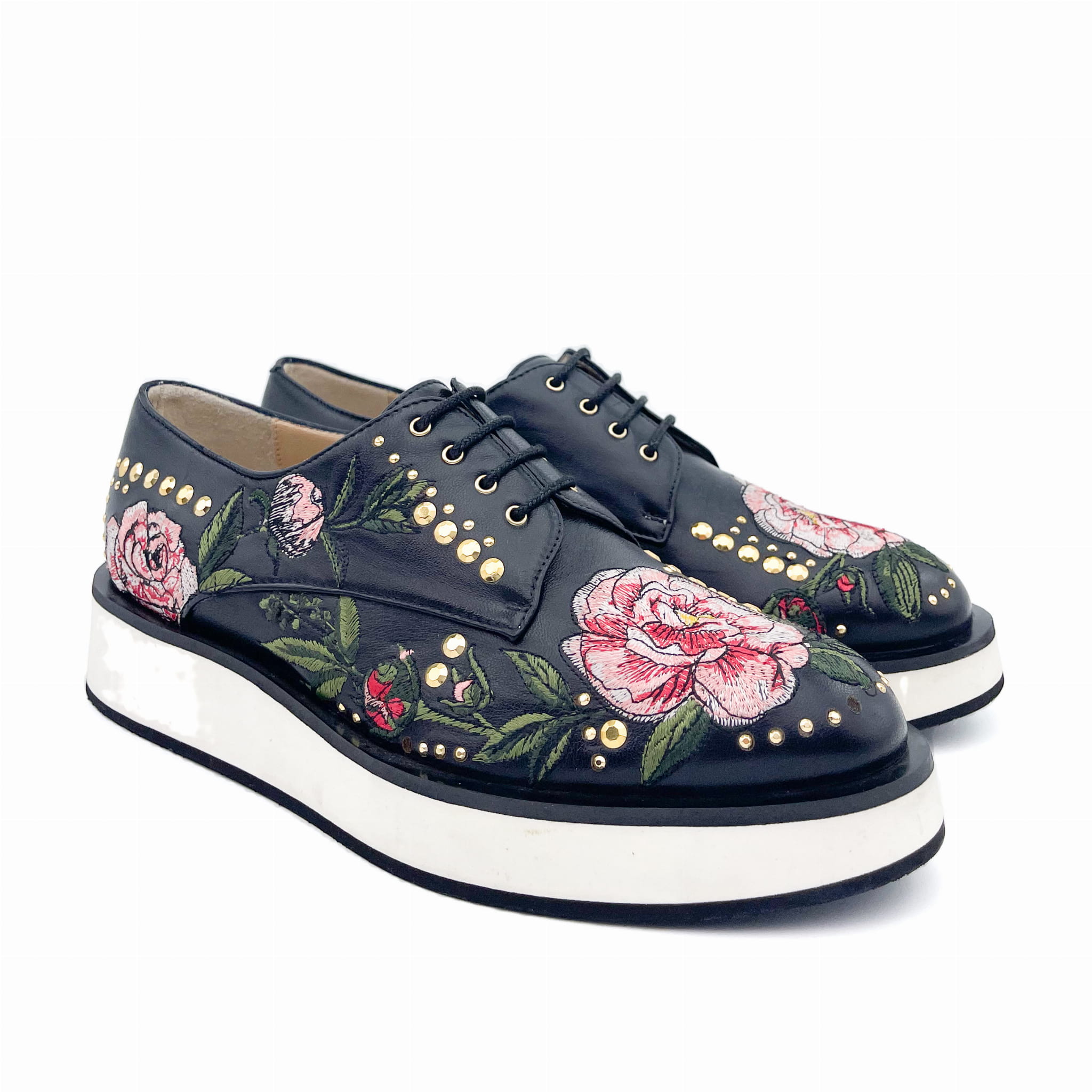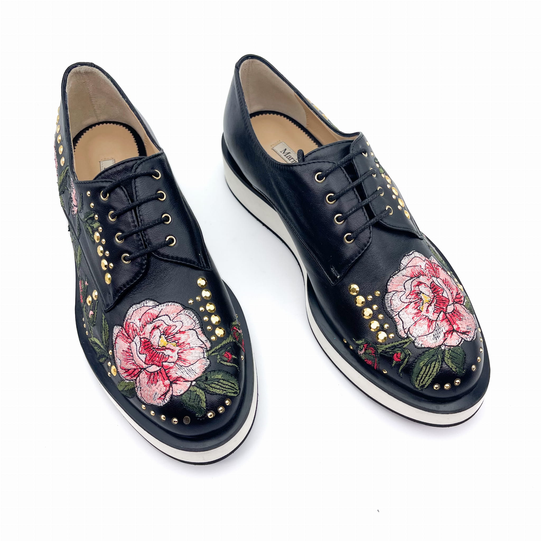 Wykonane z wysokiej jakości skóry licowej z ozdobnym kolorowym haftem.