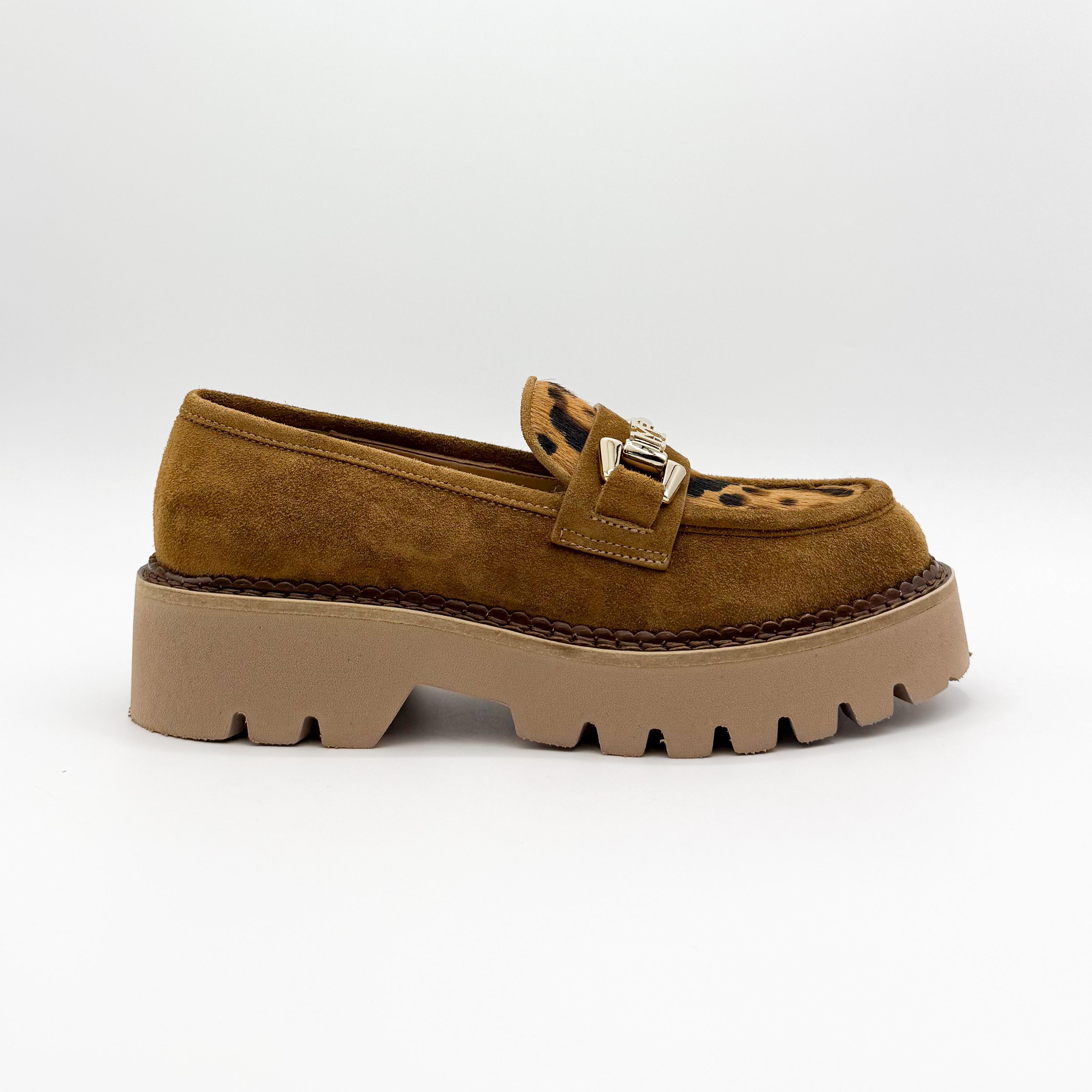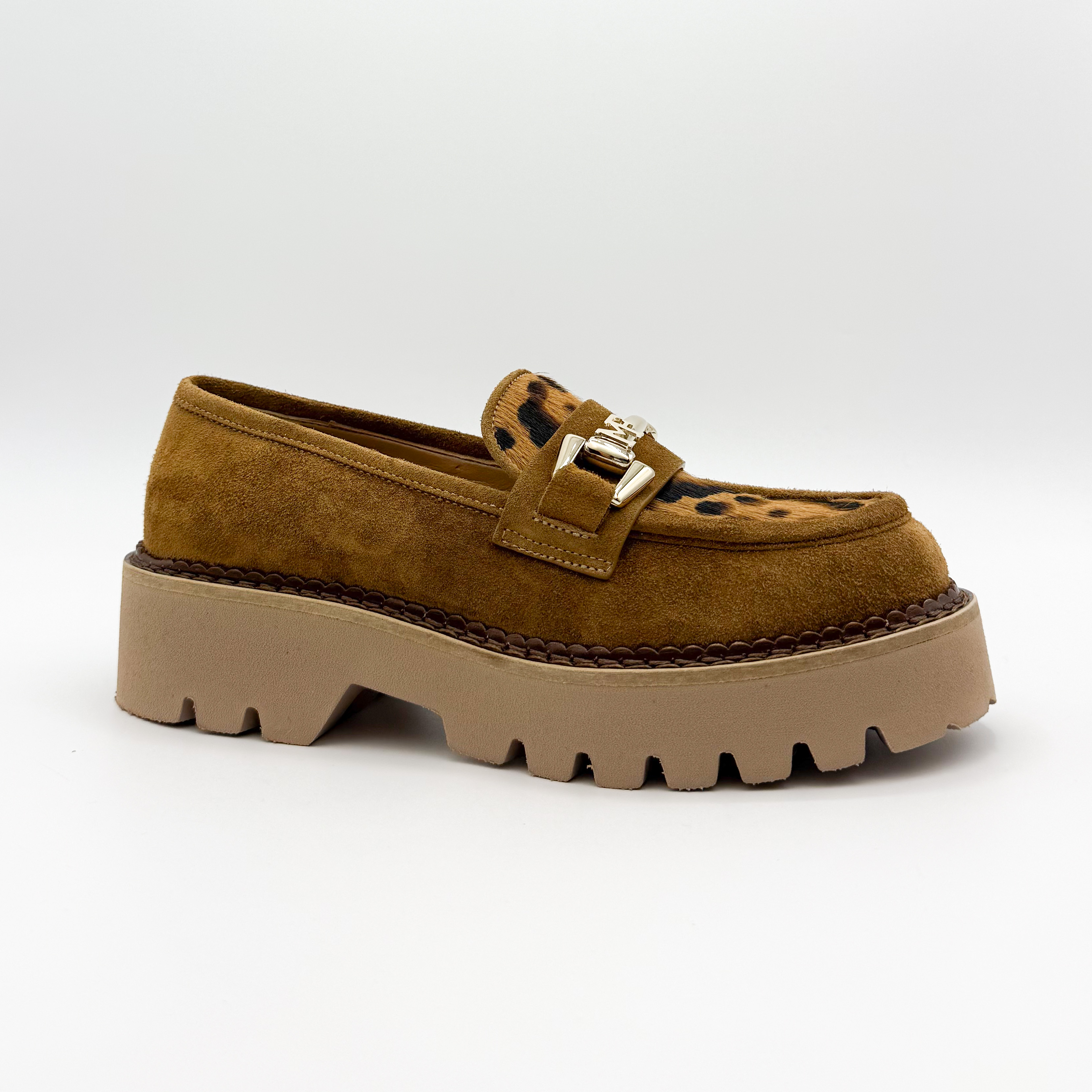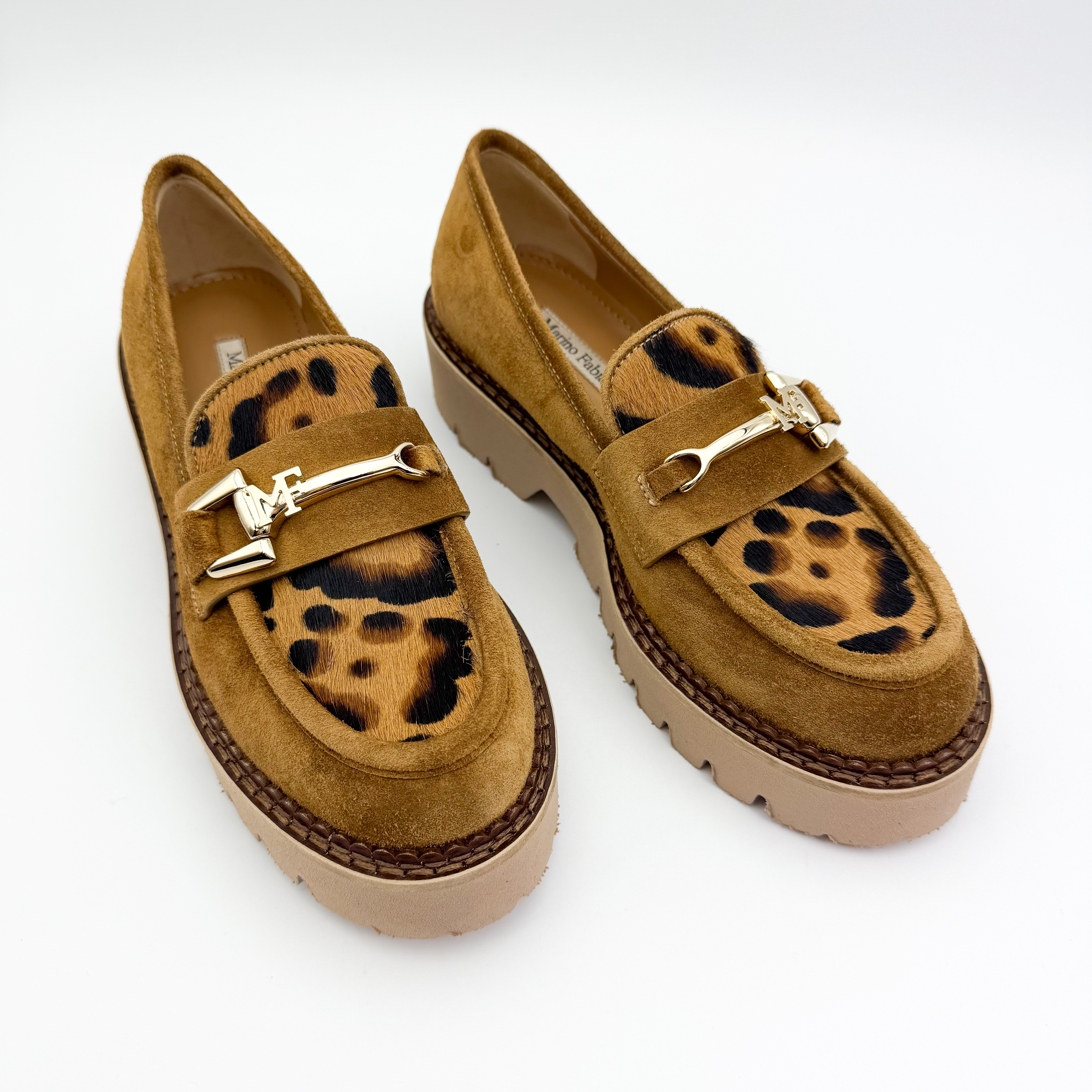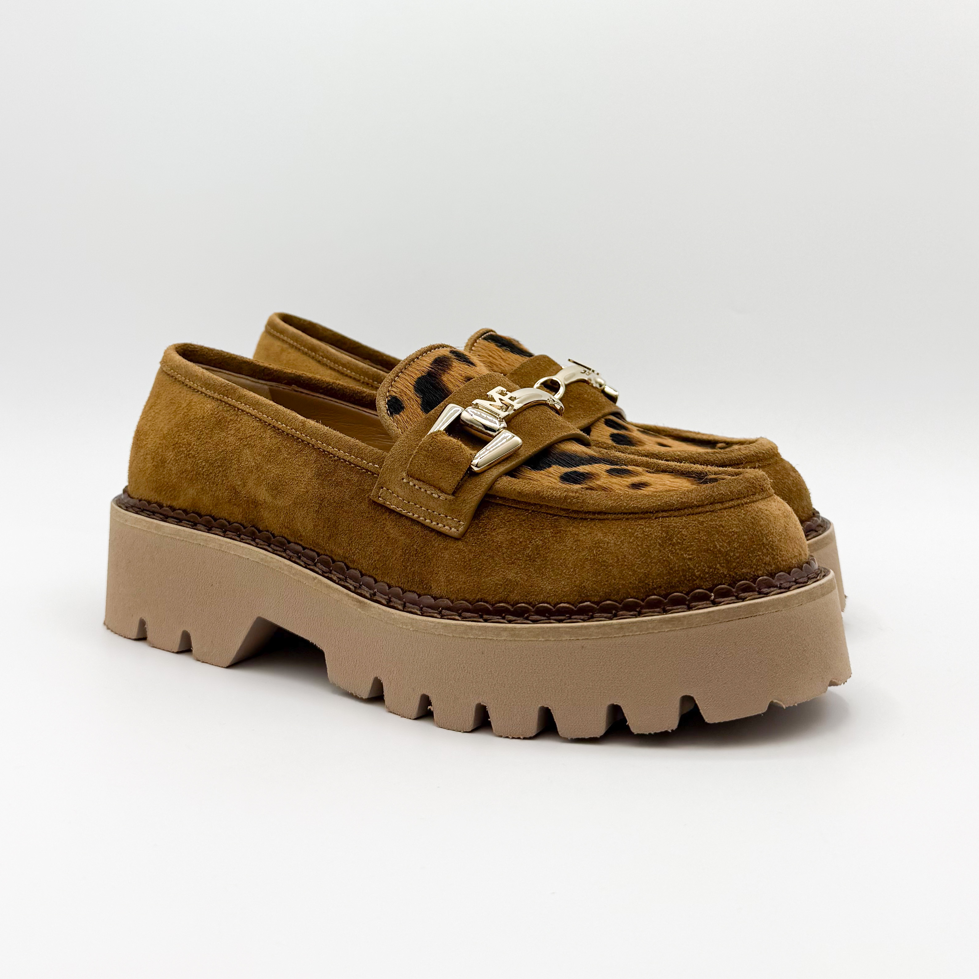 Wyjątkowe mokasyny Marino Fabiani to połączenie elegancji i odrobiny odwagi w stylu. Wykonane z miękkiego zamszu w ciepłym karmelowym odcieniu, ozdobione motywem panterki i złotą klamrą, przyciągają wzrok i dodają charakteru każdej stylizacji. Gruba, beżowa podeszwa gwarantuje komfort oraz stabilność na co dzień. Idealne do miejskich i casualowych zestawień.