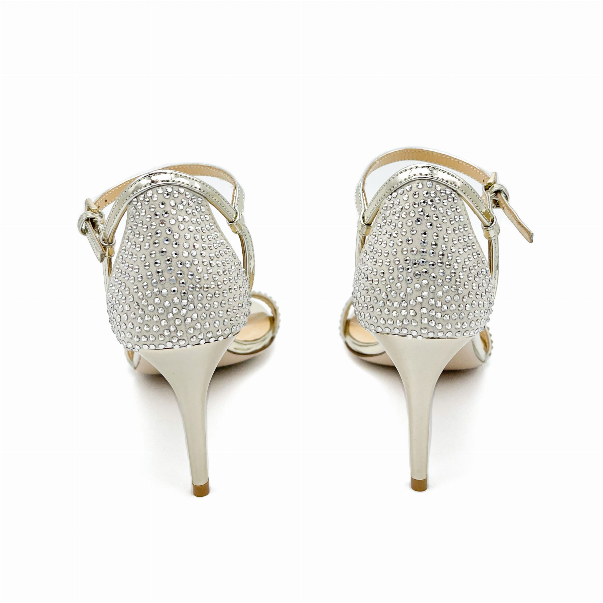 Wykonane ze skóry lakierowanej, zdobione kamieniami Swarovskiego.