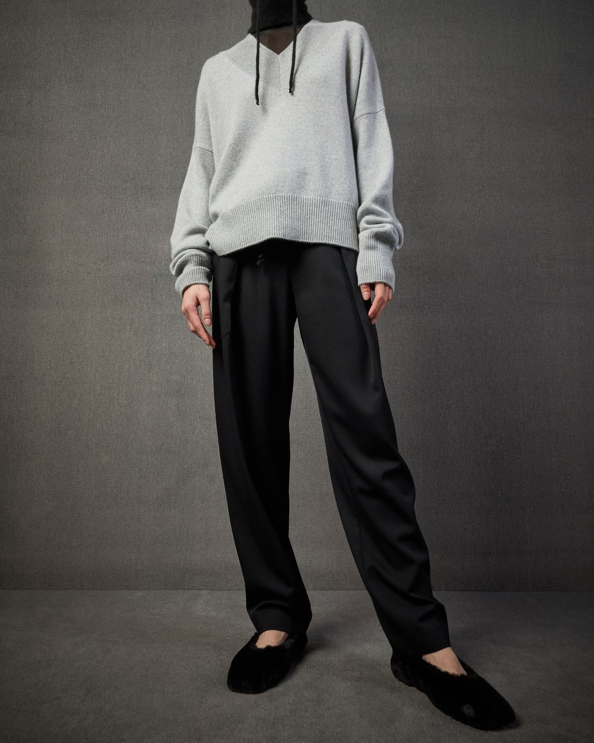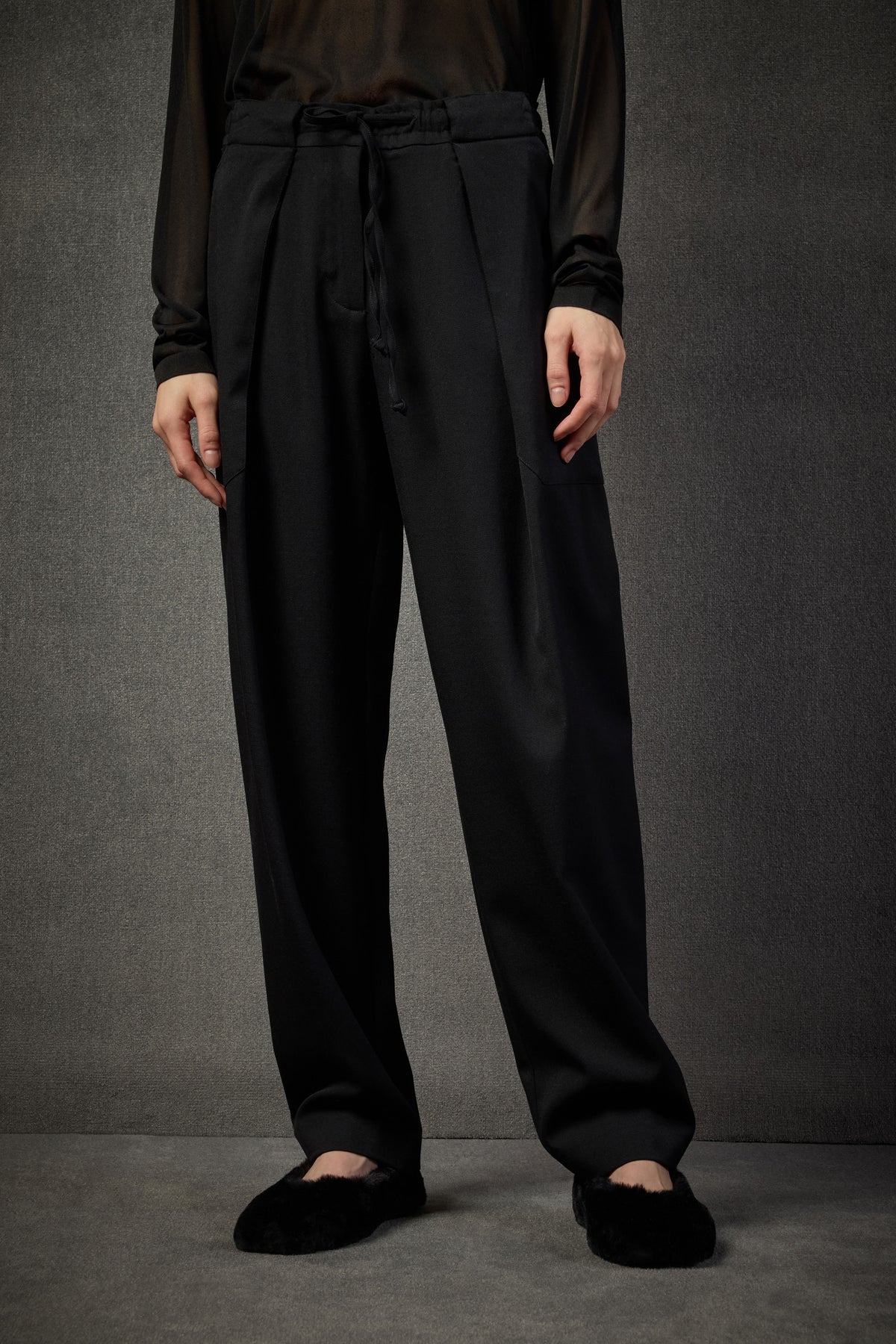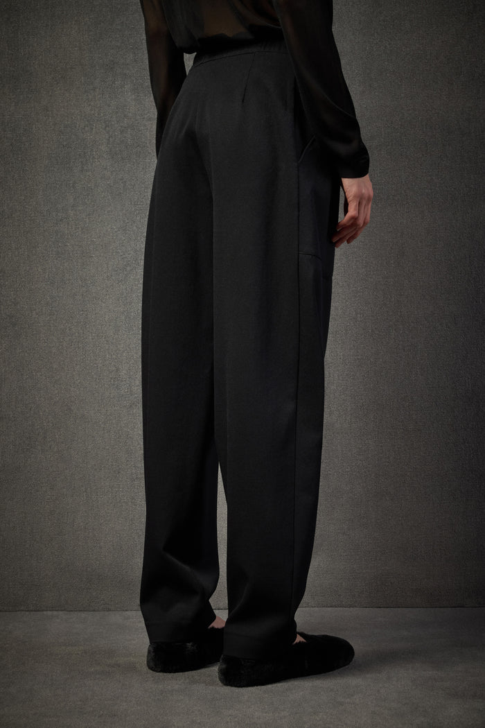 Miękka, luksusowa tkanina (98% wełna, 2% elastan) układa się płynnie, dodając całości szlachetnej elegancji. To spodnie, które świetnie sprawdzą się zarówno w stylizacjach casualowych, jak i bardziej wyszukanych — w parze z lekką bluzką, golfem czy marynarką.