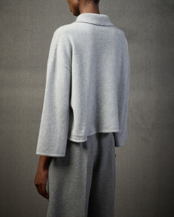 Elegancki, wyjątkowo miękki sweter damski Liviana Conti o swobodnym, nowoczesnym kroju. Wykonany z luksusowej mieszanki kaszmiru, jedwabiu i wełny, zachwyca lekkością oraz przyjemnym w dotyku, delikatnym wykończeniem. Model wyróżnia się kołnierzykiem polo i zapięciem na trzy guziki, a także subtelnie poszerzanymi rękawami, które nadają całości wyrafinowanego charakteru. Minimalistyczny fason pięknie układa się na sylwetce i doskonale dopełni zarówno codzienne stylizacje, jak i bardziej eleganckie zestawienia.