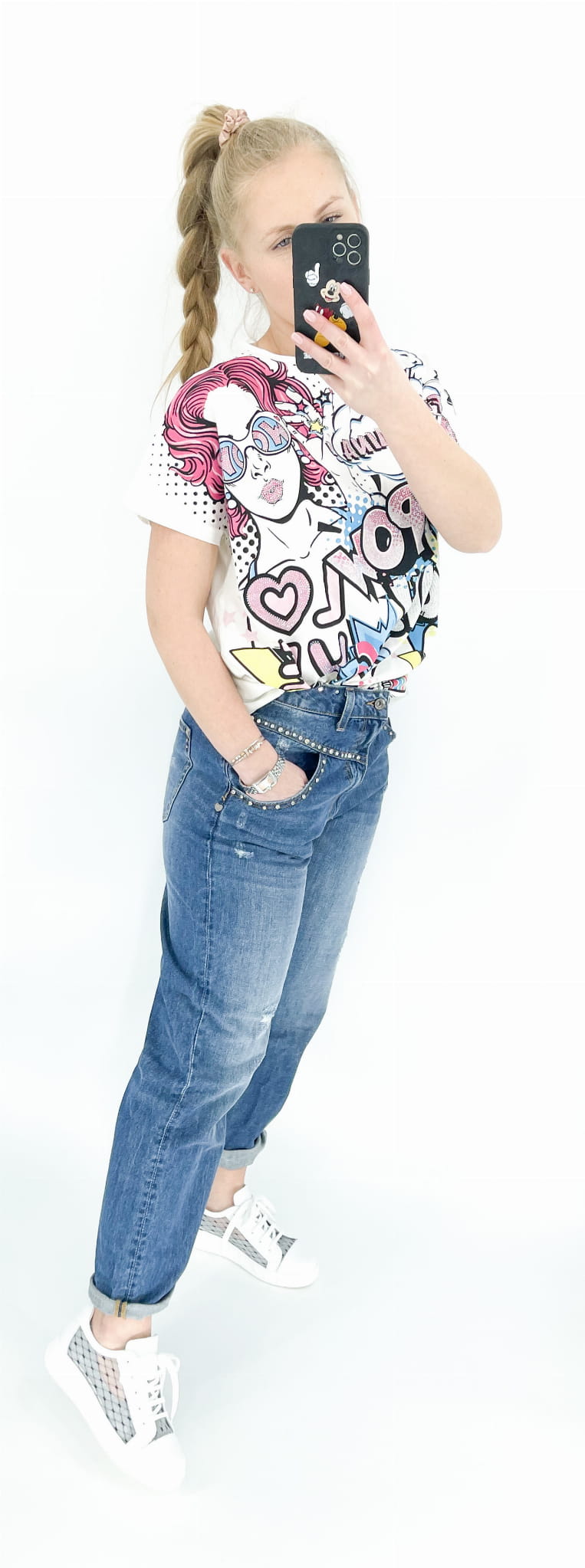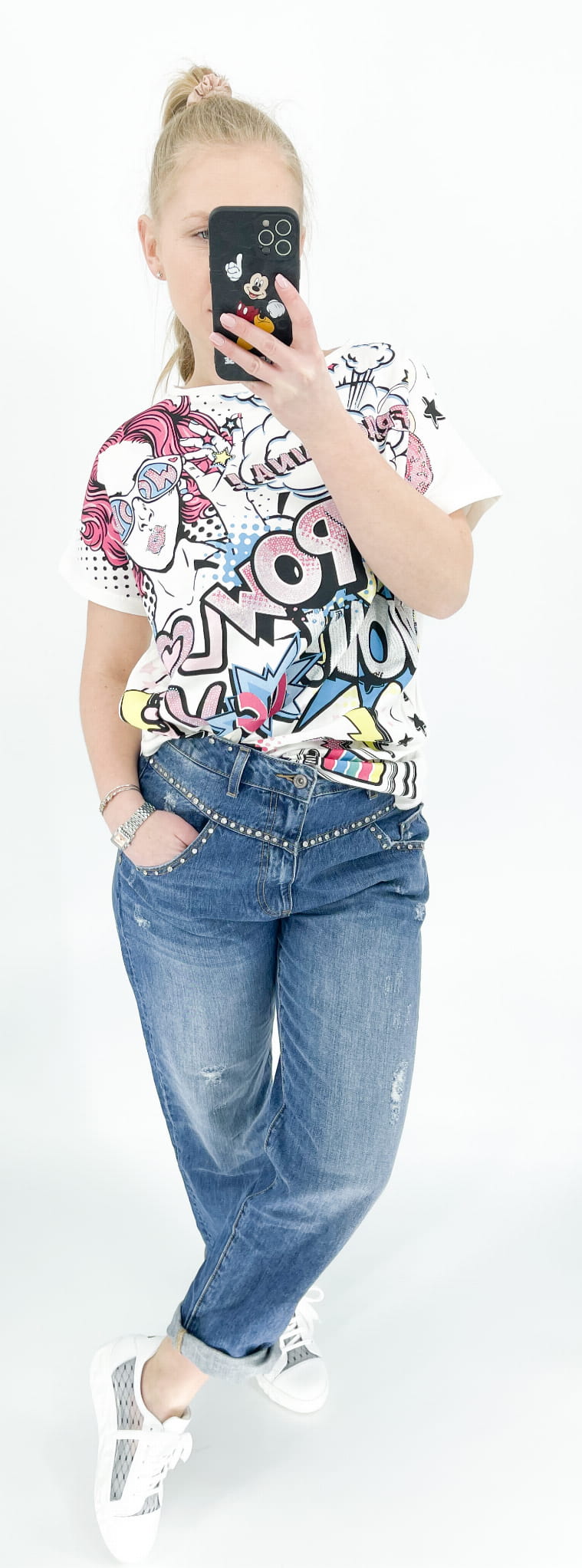Z przodu nadruk z błyszczącymi kryształkami.