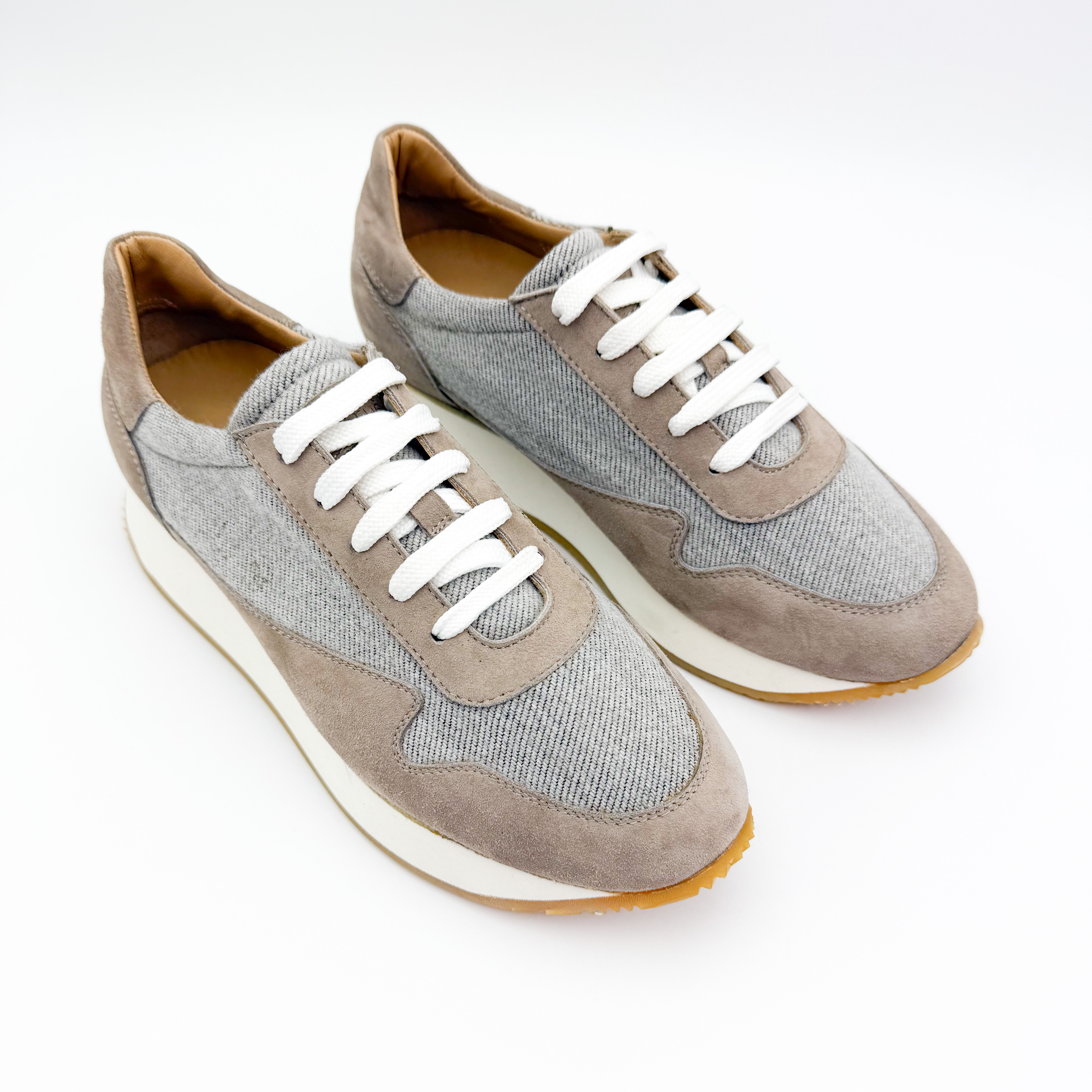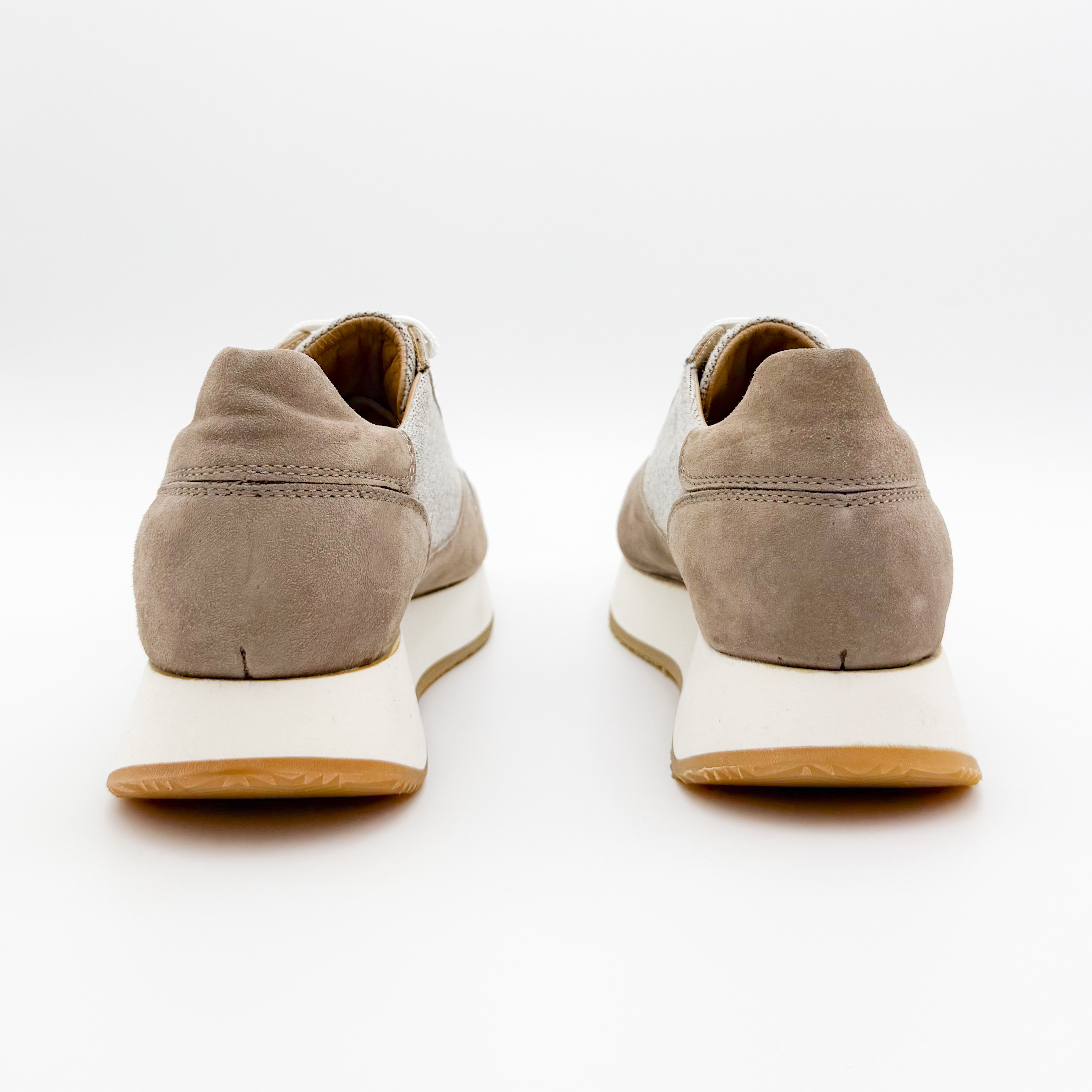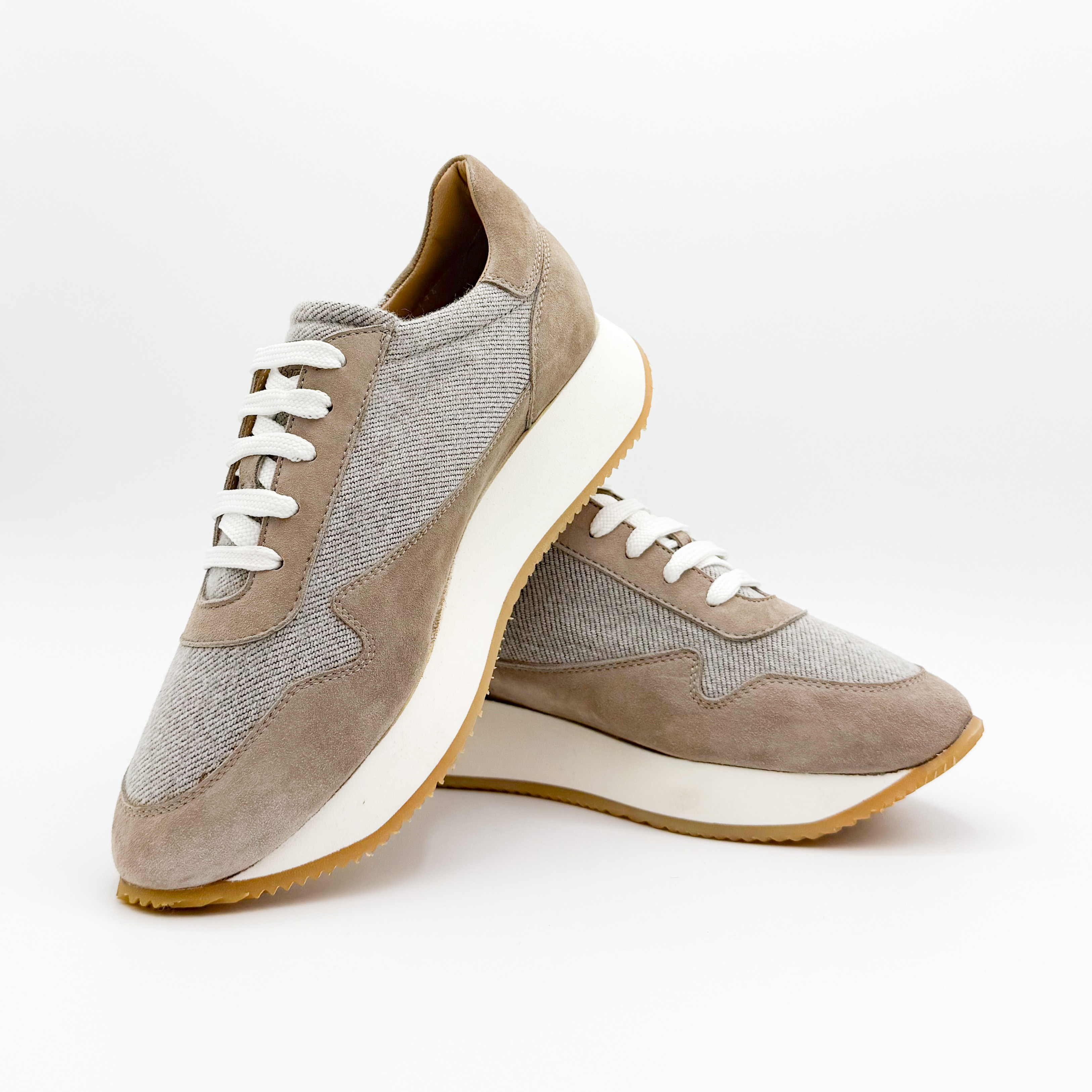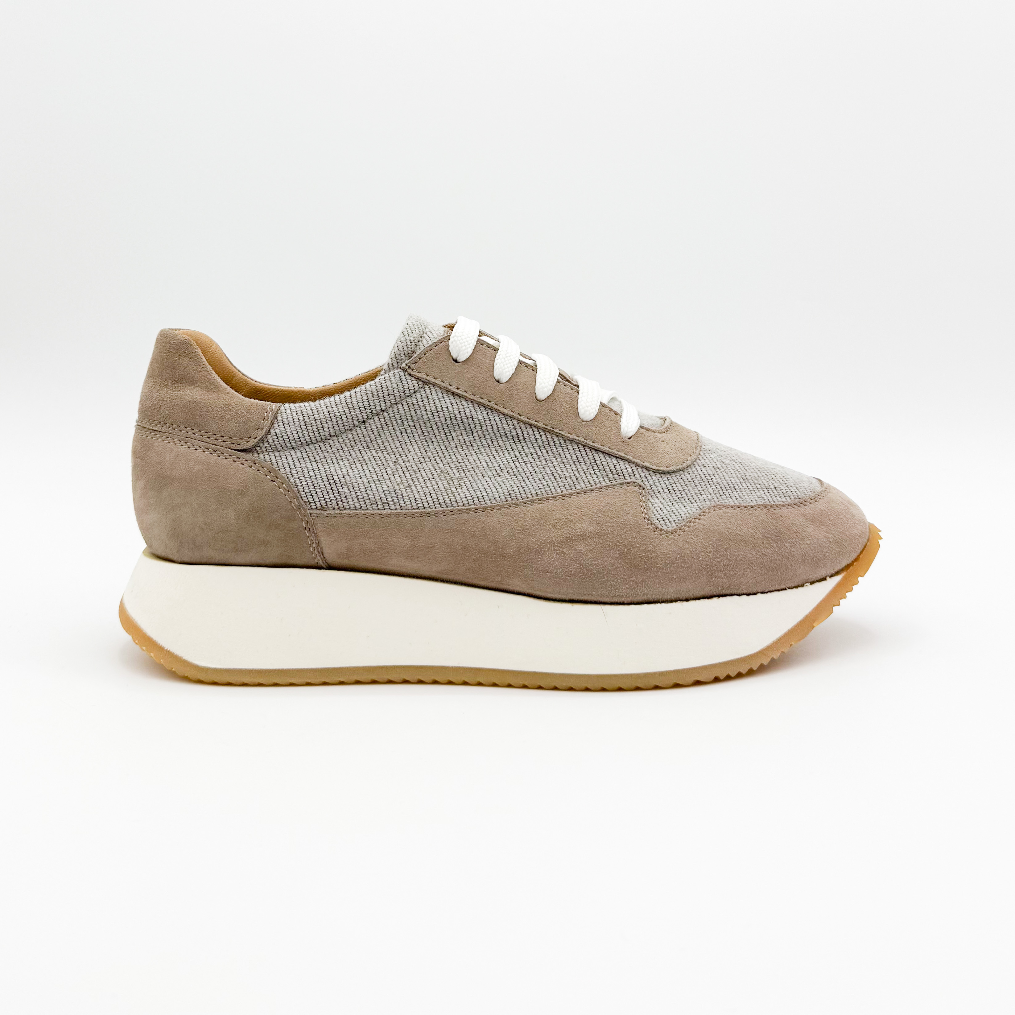 Damskie sneakersy Aldo Brue to połączenie subtelnej elegancji i włoskiej precyzji wykonania. Model utrzymany w beżowo-szarej tonacji zachwyca minimalistycznym designem, który doskonale komponuje się z casualowymi stylizacjami. Cholewka wykonana z naturalnego zamszu i tkaniny zapewnia lekkość oraz przewiewność, a podwyższona, kontrastowa podeszwa dodaje nowoczesnego charakteru i optycznie wysmukla sylwetkę.