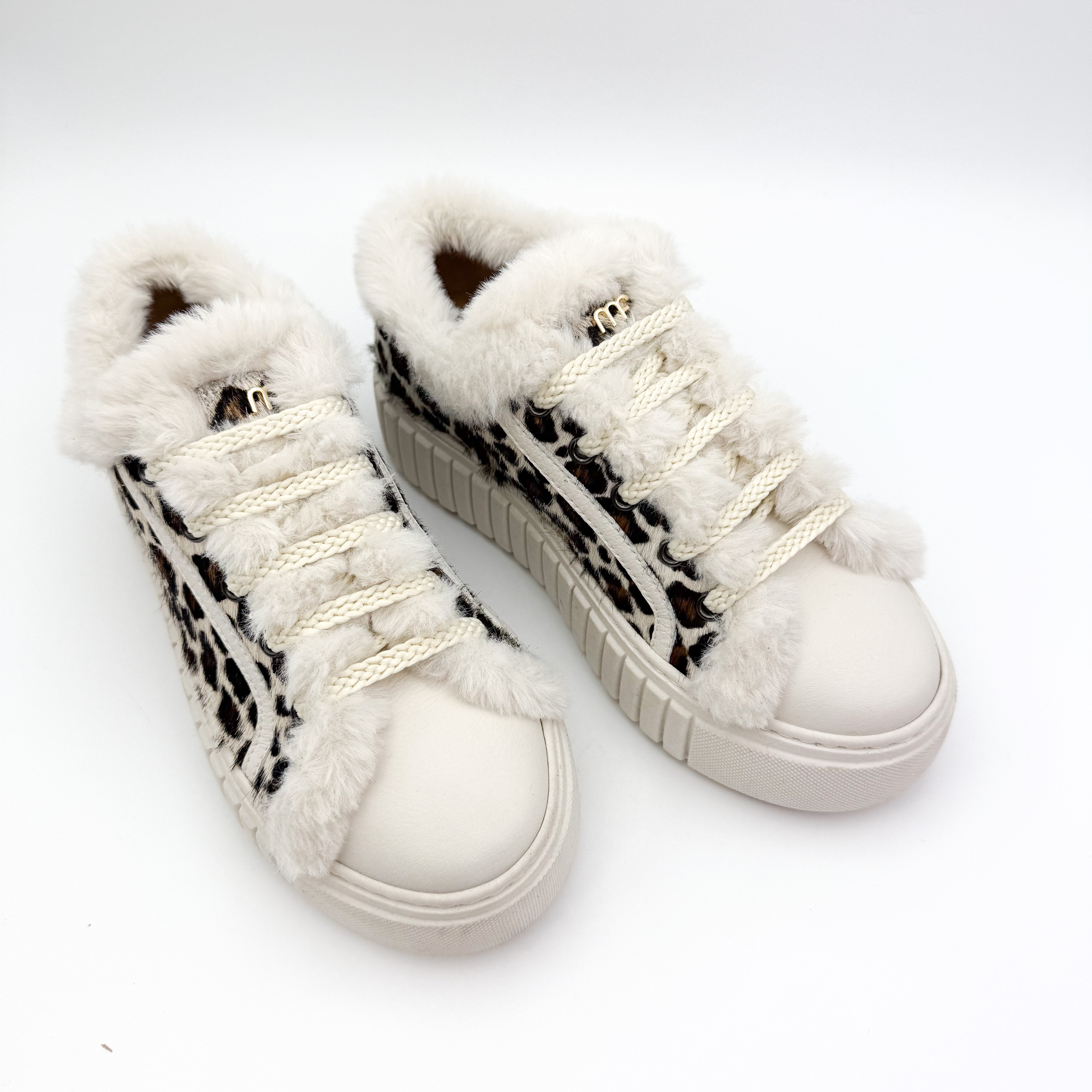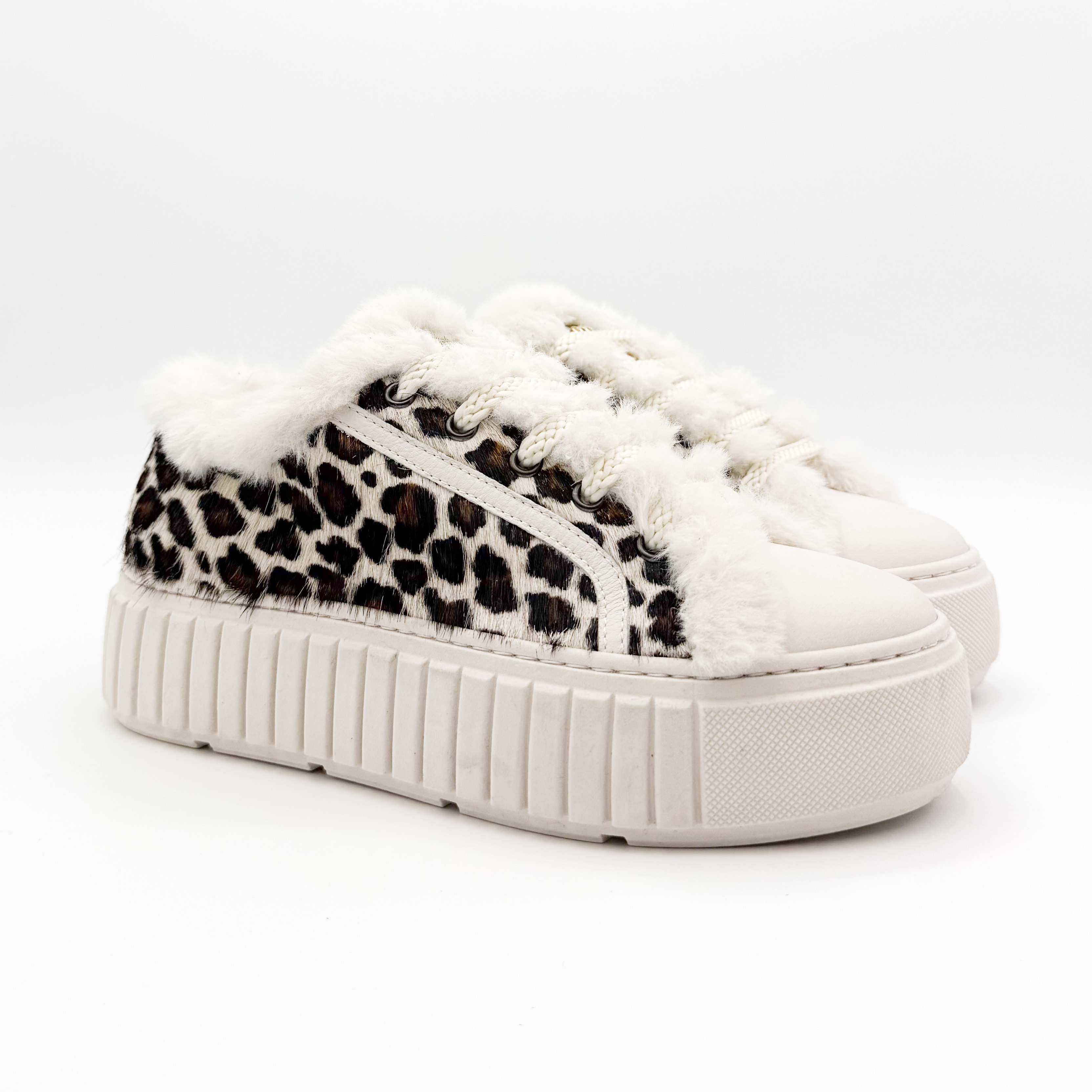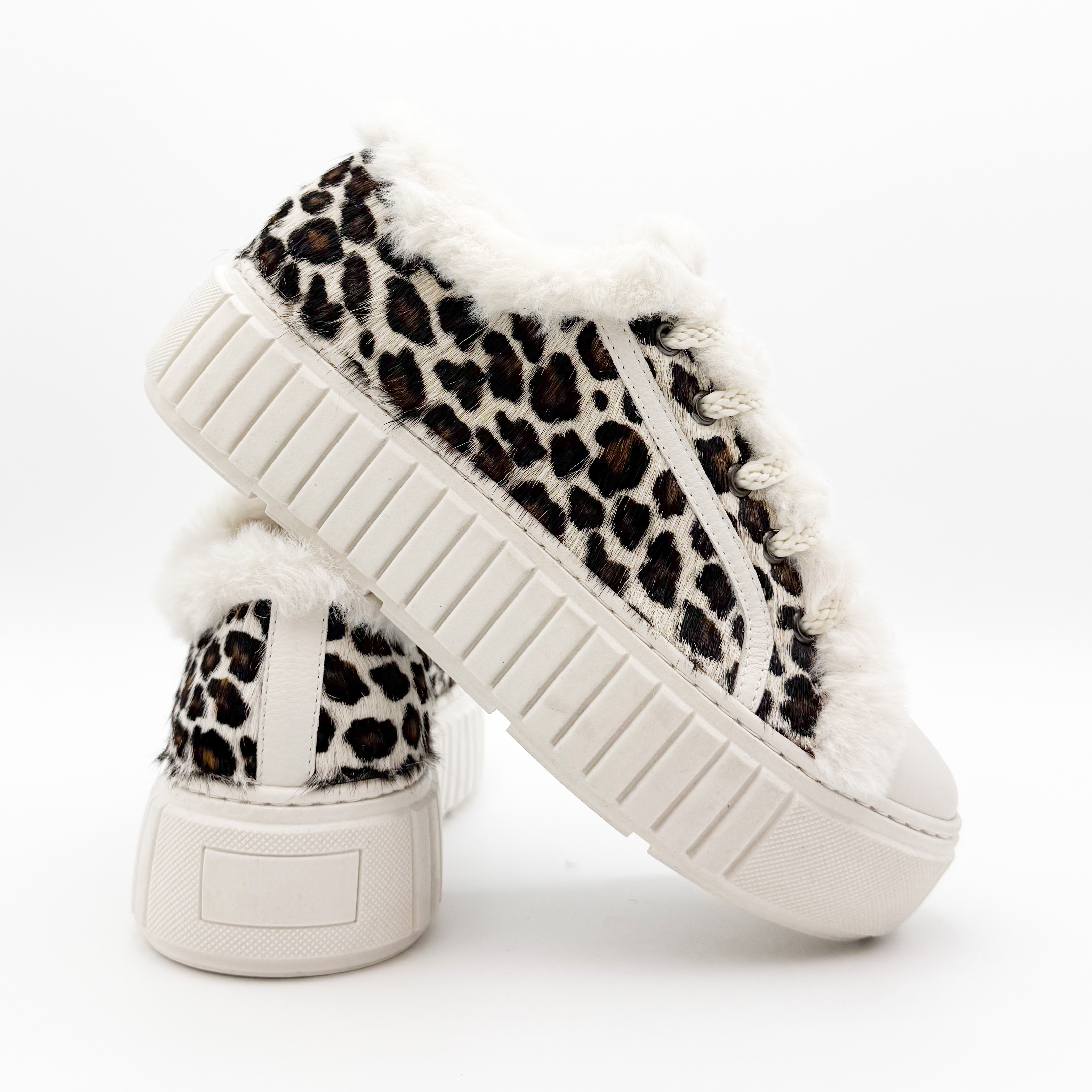 Damskie sneakersy Marino Fabiani to wyjątkowe połączenie komfortu i ekstrawaganckiego stylu. Wyróżniają się efektownym wzorem w panterkę na naturalnym włosiu, który nadaje im luksusowego charakteru. Buty ozdobiono miękkim futerkiem znajdującym się na zewnątrz oraz na języku od środka, co podkreśla ich niepowtarzalny wygląd. Wnętrze wykonane ze skóry naturalnej gwarantuje wygodę i komfort noszenia przez cały dzień. Gruba, żłobiona podeszwa nadaje całości nowoczesnego charakteru i zapewnia stabilność. Idealny wybór dla kobiet ceniących modny, włoski design i najwyższą jakość wykonania.