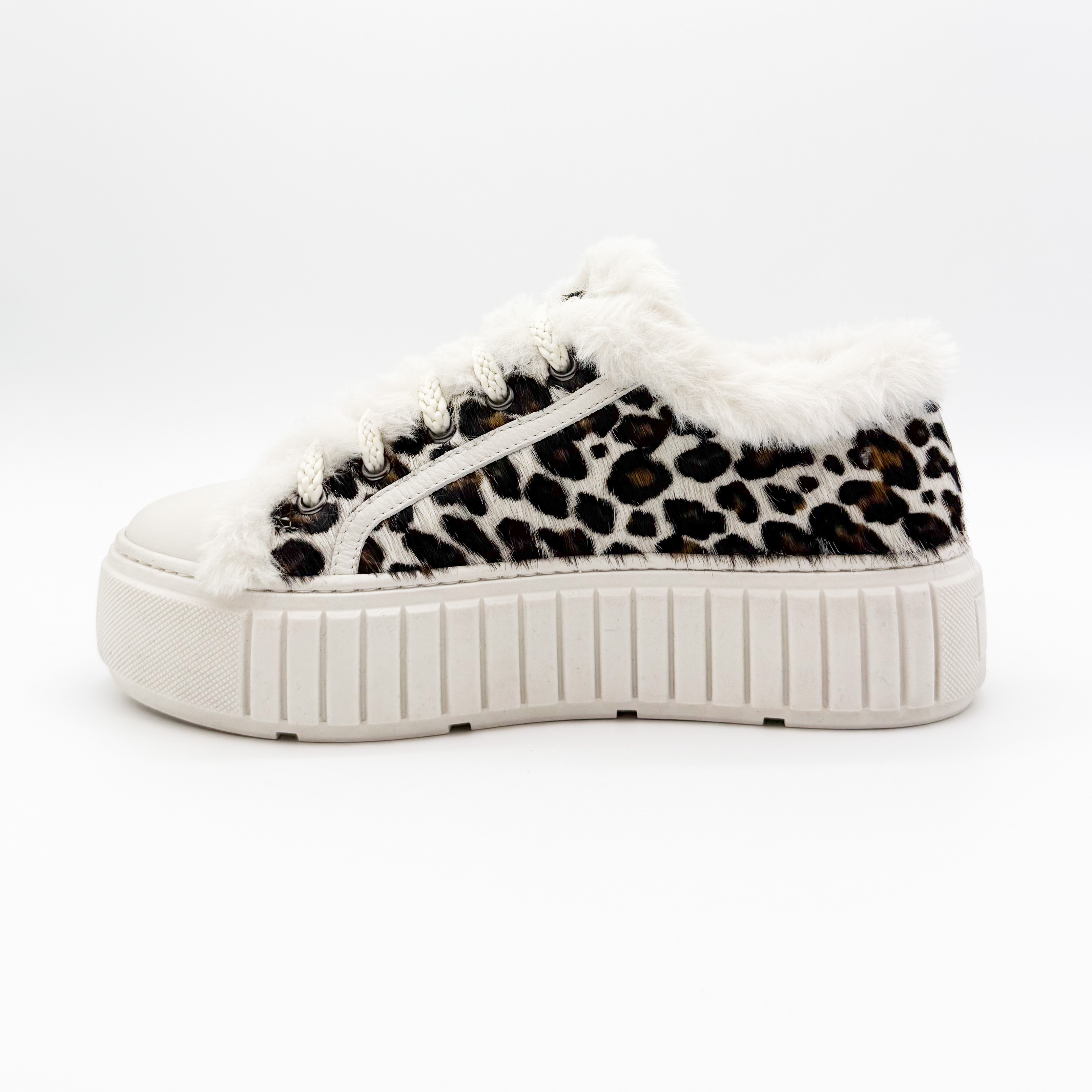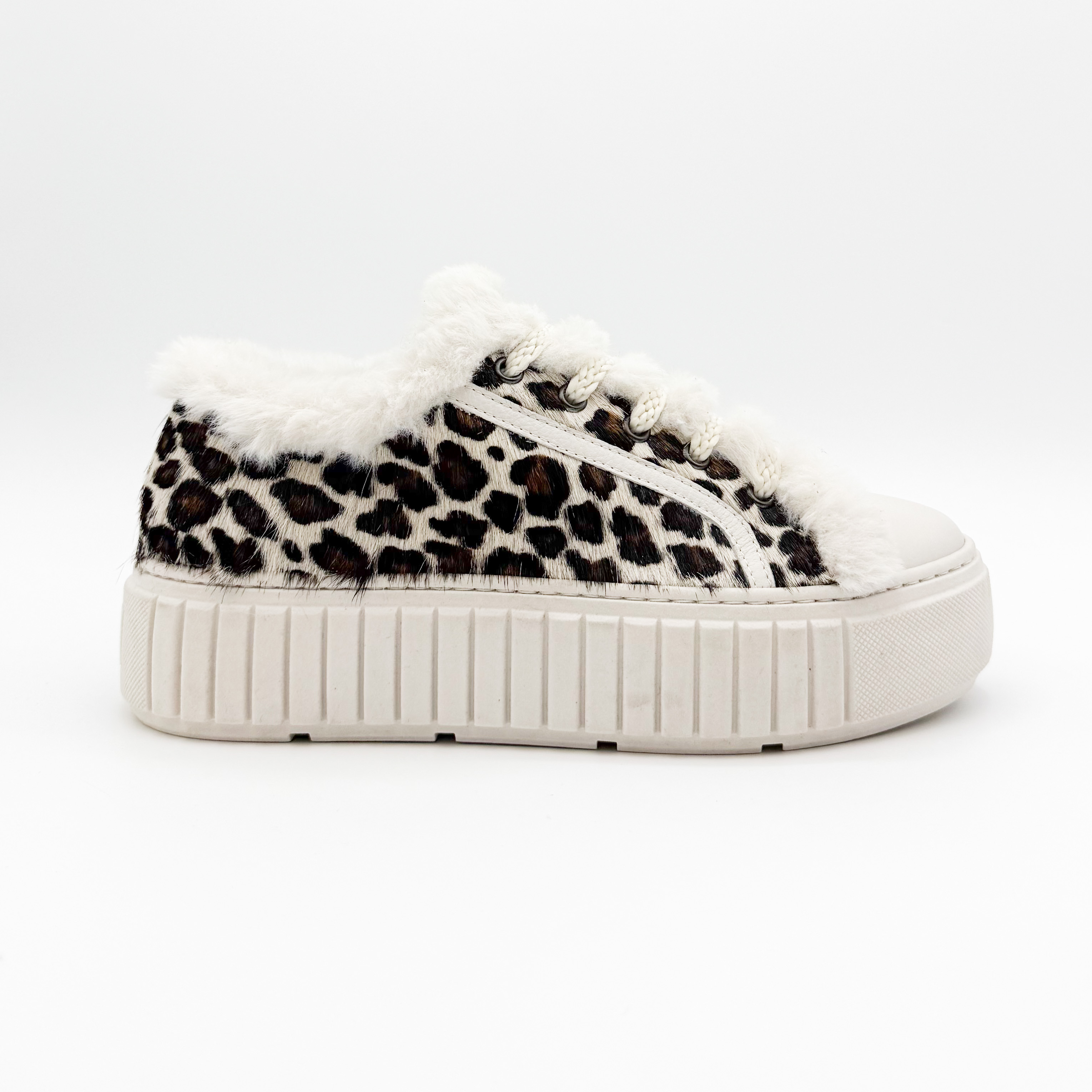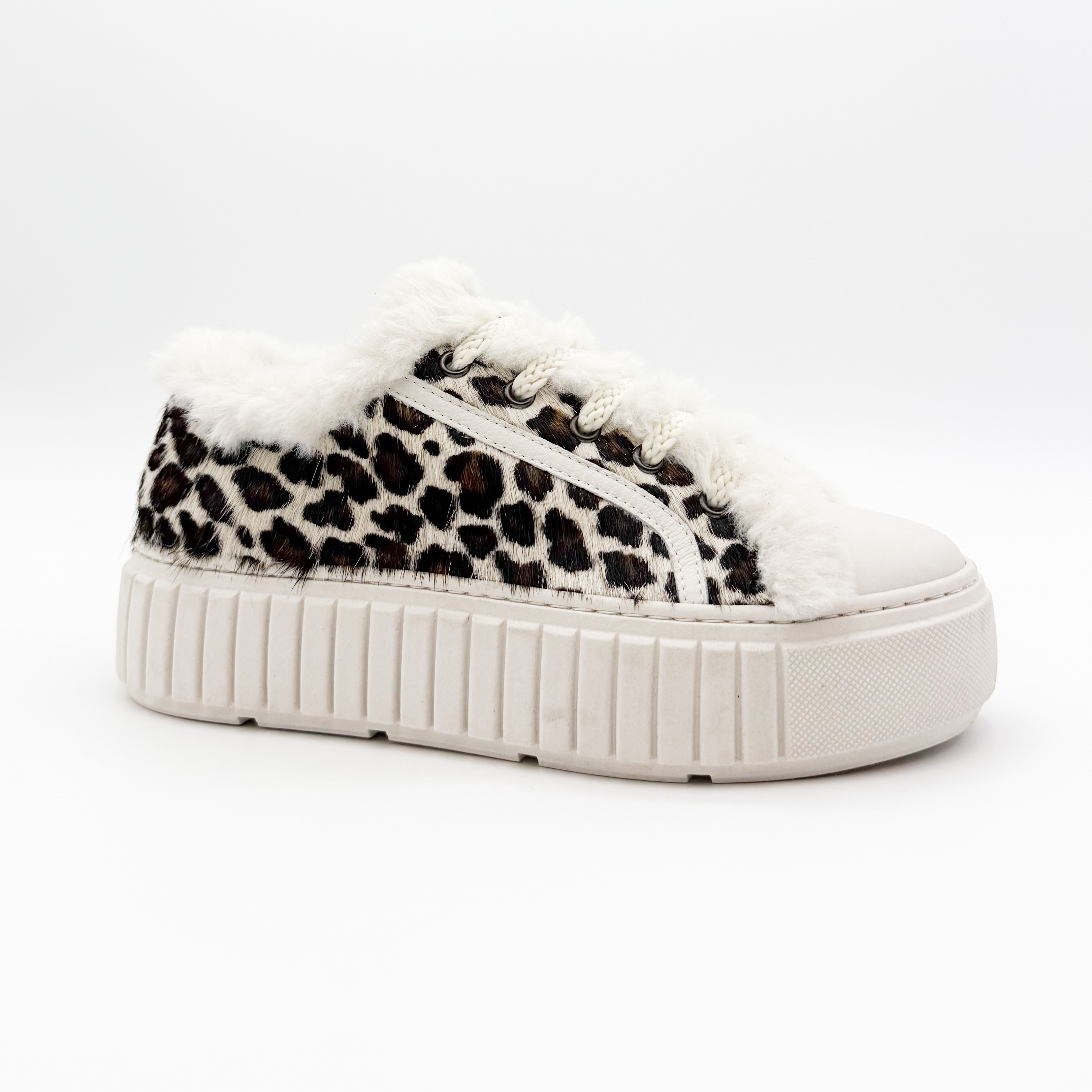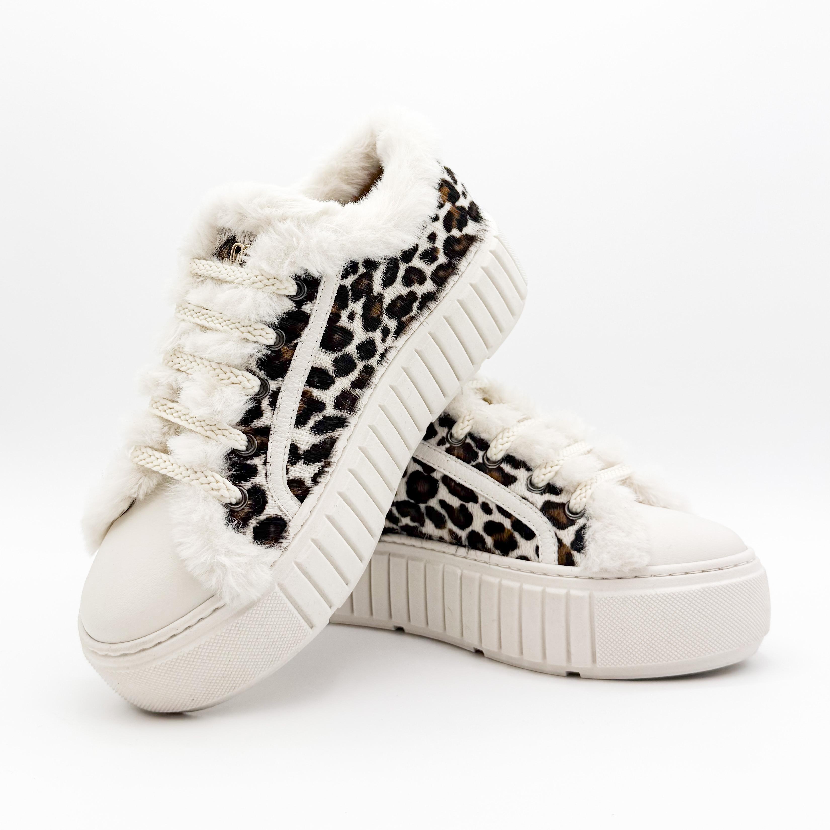 Damskie sneakersy Marino Fabiani to wyjątkowe połączenie komfortu i ekstrawaganckiego stylu. Wyróżniają się efektownym wzorem w panterkę na naturalnym włosiu, który nadaje im luksusowego charakteru. Buty ozdobiono miękkim futerkiem znajdującym się na zewnątrz oraz na języku od środka, co podkreśla ich niepowtarzalny wygląd. Wnętrze wykonane ze skóry naturalnej gwarantuje wygodę i komfort noszenia przez cały dzień. Gruba, żłobiona podeszwa nadaje całości nowoczesnego charakteru i zapewnia stabilność. Idealny wybór dla kobiet ceniących modny, włoski design i najwyższą jakość wykonania.